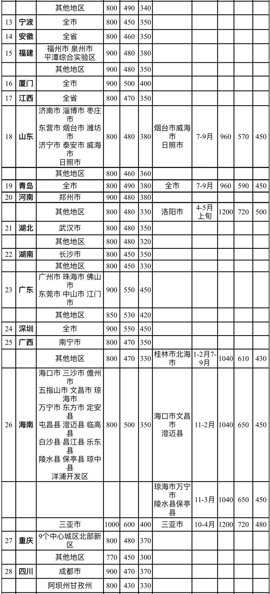 差旅住宿费标准明细表