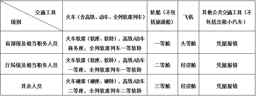 出差人员应当按规定等级乘坐公共交通工具↓↓↓